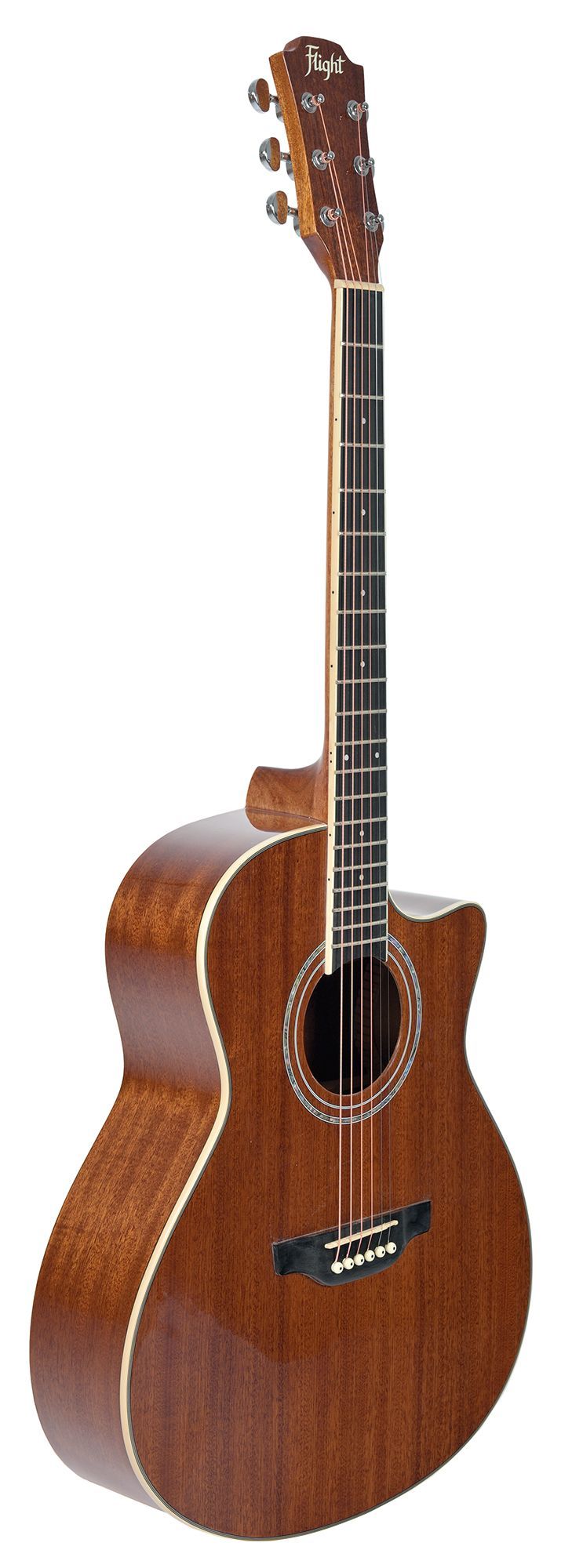 Обратите внимание на скос на корпусе под правую руку! Раньше таким скосом обладали только электрогитары, теперь Flight AG-300C NA воплощает это удачное решение для акустического инструмента. Просто сравните ощущения от игры на гитаре со скосом с ощущениями от обычной гитары и почувствуйте насколько это удобно!