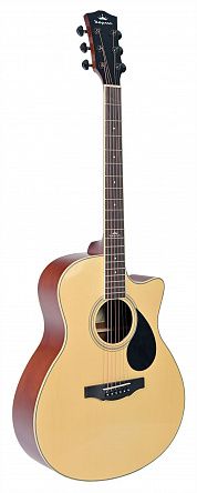 FLIGHT GA-150 BK - гитара с вырезом и объемным корпусом Grand Auditorium обладает громким насыщенным звучанием и удобным доступом к верхним позициям. Верхняя дека из ели придает инструменту яркое и сбалансированное звучание, а нижняя дека и обечайка из сапеле обладают хорошими акустическими свойствами. Гриф изготовлен из красного дерева с накладкой из кабукалли, что способствует стабильности гитарного строя.