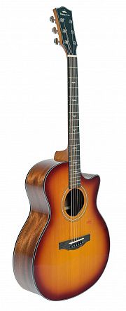 Выдающаяся гитара дредноут GD93 имеет современный внешний вид и отличительный звук. Для гитаристов, подбирающих себе сценический инструмент, особенно оценят эту гитару, ведь в ее конструкции использованы топ из цельной ели, обечайки из палисандра и красивейшая трех-кусковая задняя дека из черного ореха и клена. Тонкий гриф из красного дерева и накладка из палисандра с 12-дюймовым радиусом дарят приятные ощущения и играбельность. Бридж из палисандра конструкции split-saddle производит чудесное интонирование как при игре аккордами, так и при извлечении отдельных нот. Среди прочих достоинств инструмента стоит отметить плотные порожки и седло из синтетической кости, окантовку розетки и корпуса древесиной темных пород, палисандровую декоративную накладку на голову грифа, инкрустацию накладки грифа в виде абалоновых точек, золотые литые колки с черными бутонами и прекрасную глянцевую отделку.