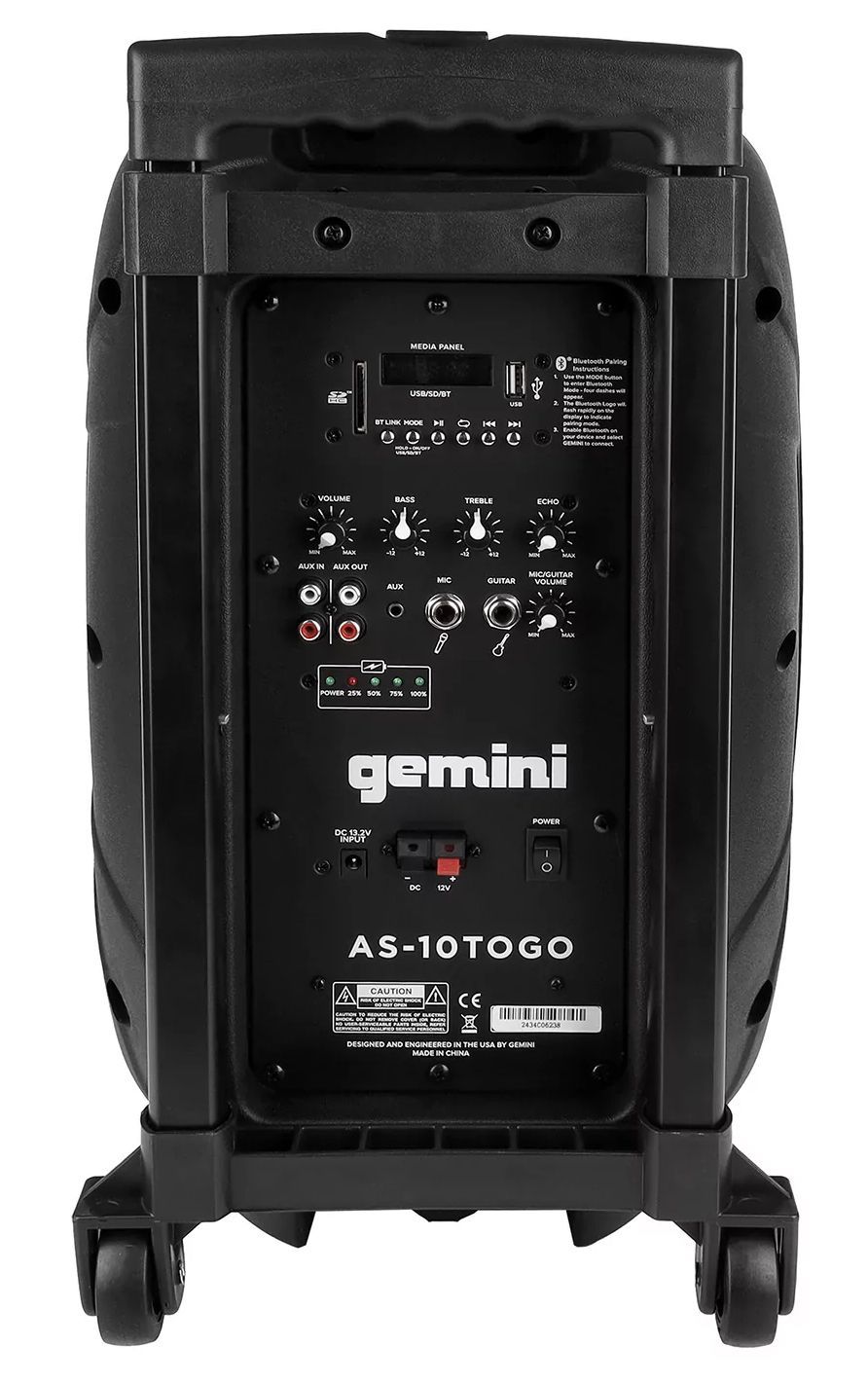 Gemini AS-10TOGO обеспечивает мощный звук благодаря перезаряжаемой батарее в удобном портативном корпусе. Благодаря размеру рюкзака, встроенной выдвижной ручке и плавным перекатывающимся колесикам эта многофункциональная колонка всегда под рукой в дороге. Она сочетает в себе мощный 10-дюймовый низкочастотный динамик с 1,2-дюймовым высокочастотным компрессионным драйвером для создания мощного, смелого звука независимо от его применения. Линейная частотная характеристика в диапазоне от 55 Гц до 20 кГц означает, что громкоговоритель будет воспроизводить звук на постоянном уровне во всем диапазоне, что обеспечит точное прослушивание.