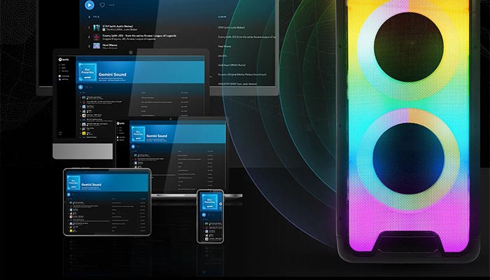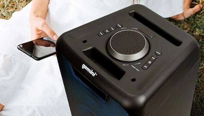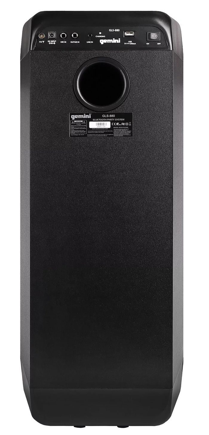 Gemini GLS-880 - это акустическая система с двумя 8-дюймовыми динамиками, с подключением и воспроизведением по Bluetooth, и настраиваемой светодиодной подсветкой для вечеринок с синхронизацией с ритмом музыки.