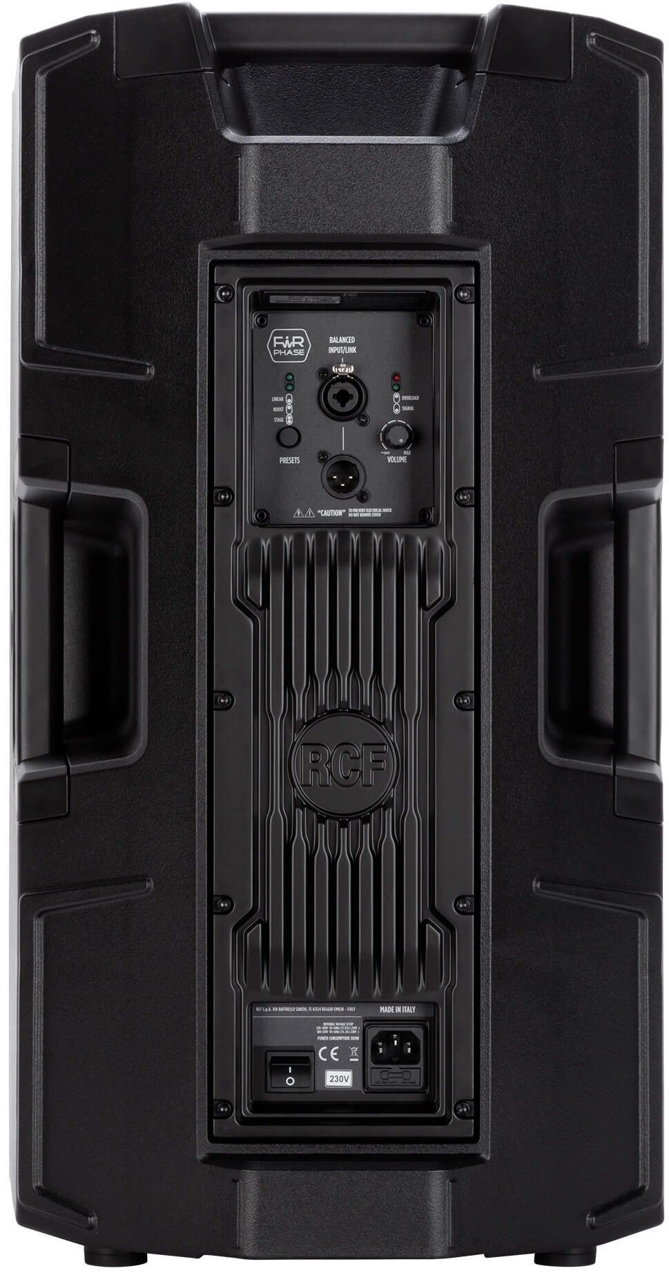 Усовершенствования в конструкции преобразователей RCF делают их более мощными, поэтому усилитель не отстает от развитиях технологий. Обладая мощностью 2100 Вт, двухканальный усилитель класса D на 50 % мощнее предыдущих моделей и способен справляться с чрезвычайно высоким уровнем звукового давления благодаря сверхбыстрой атаке, реалистичной переходной характеристике и очень низким теплопотерям. Акустическая система RCF серии ART отличается высокой энергоэффективностью, поэтому для полноценной работы не требуется охлаждающий вентилятор - усилитель крепится к прочному алюминиевому теплообменнику на задней части устройства. Благодаря физическому соединению с внутренним каркасом, усилитель надежно закреплен внутри корпуса. Входная схема имеет новую конструкцию с низким уровнем искажений и усовершенствованным ограничителем безопасности, сохраняющим естественную природу входного сигнала на всех уровнях. Все усилители серии ART разработаны в соответствии со стандартом EN62368-1 для максимальной безопасности и оснащены импульсным источником питания, сочетающим высокую эффективность с минимальным весом.