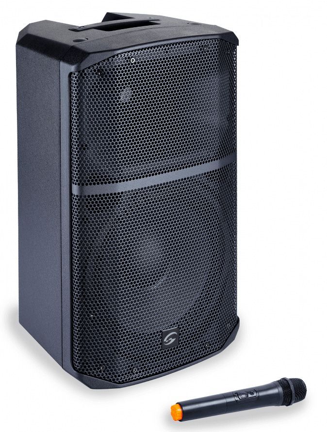 10-дюймовый низкочастотный динамик и 1-дюймовый компрессионный ВЧ драйвер приводятся в действие усилителем класса D с пиковой мощностью до 360 Вт. Источником питания, в дополнение к сетевому кабелю и внутренней аккумуляторной батарее с временем работы до 6 часов, также может служить, например, автомобильный аккумулятор, подключенный к вспомогательному входу 12 В.