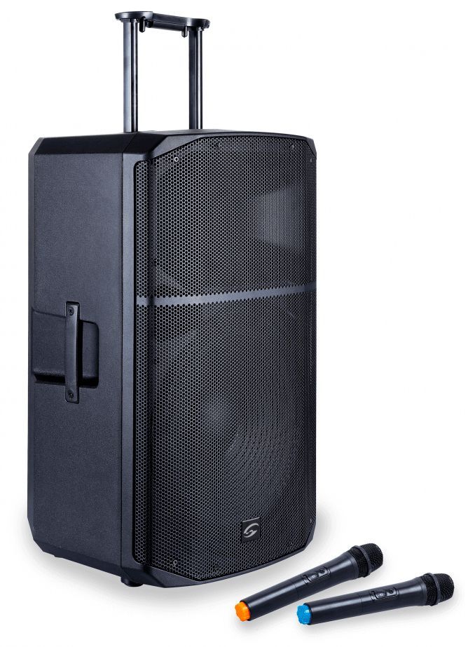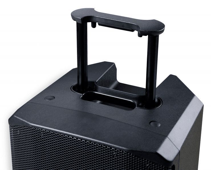 15-дюймовый низкочастотный динамик и 1-дюймовый компрессионный ВЧ драйвер приводятся в действие усилителем класса AB с пиковой мощностью до 800 Вт. Источником питания, в дополнение к сетевому кабелю и внутренней аккумуляторной батарее с временем работы до 7 часов, также может служить, например, автомобильный аккумулятор, подключенный к вспомогательному входу 12 В.