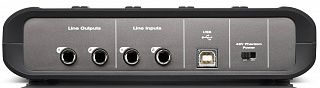 Входы/выходы: 4 аналоговых входа (2 на разъемах XLR/1/4” TRS-комбоджек & 2 - 1/4" TRS-джек), 6 аналоговых выходов (1/4” джек), 2 канала ввода/вывода S/PDIF (RCA)