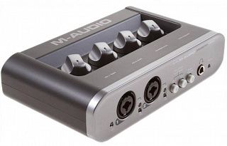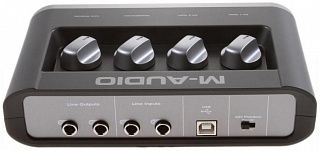 Четыре аналоговых входа (два на разъемах XLR/1/4” TRS-комбоджек и два — 1/4” TRS-джек), шесть выходов (1/4” джек), два канала S/PDIF (на разъемах RCA), MIDI-вход/выход — все это «упаковано» в компактный корпус из синего пластика. На передней панели расположены два инструментальных DI-входа. Mbox 2 Pro также оборудован входом на разъеме RCA, на который можно напрямую подавать сигнал с проигрывателя виниловых грампластинок. Устройство поддерживает MIDI Time Stamping (MTS), снабжено входом и выходом Word Clock (BNC), выходами на контрольные мониторы с отдельным регулятором громкости и двумя стерео-выходами на наушники с индивидуальными регуляторами громкости. Список профессиональных функций был бы неполным, если бы в нем не было фантомного питания 48 В и мониторинга с низким временем задержки.