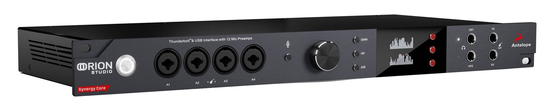 12 дискретных предусилителей Orion Studio Synergy — одна из его самых узнаваемых особенностей. Они разработаны для обеспечения прозрачного звучания и аутентичного захвата любого источника звука, обеспечивая впечатляющий коэффициент усиления 75 дБ при практически нулевом уровне шума. Микрофонные предусилители Orion Studio превосходно передают истинный характер вокала или любого акустического инструмента. Они звучат ярко, особенно в сочетании с моделирующими конденсаторными микрофонами Antelope Audio Edge.