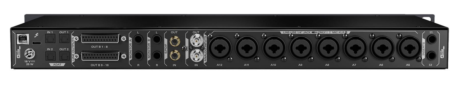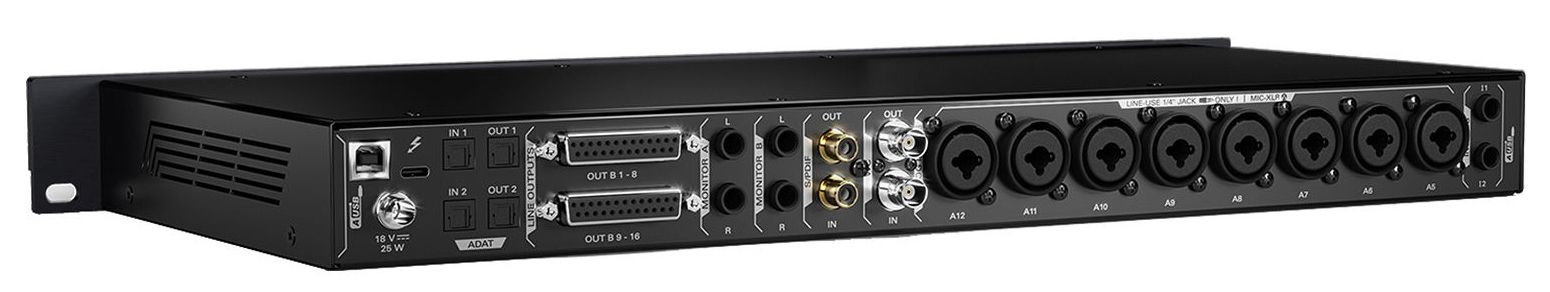 • Аудиоинтерфейс 14 x 24 для монтажа в рэк с Thunderbolt и USB для Mac/Windows