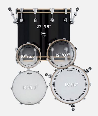 Размеры барабанов серии Z5 MODERN ROCK-5: