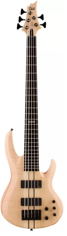 Модель бас-гитары LTD Deluxe B-1005 выполнена по схеме сквозного составного грифа с корпусом из красного дерева, который дополнен красивым кленовым топом — это сочетание обеспечивает приличный сустейн и мощную атаку. Эта бас-гитара впишется в практически любой музыкальный жанр за счет гибкости настроек, что стало возможным благодаря применению звукоснимателей EMG 40P-5, 3-полосного активного эквалайзера и переключателей режимов. Фурнитура данного баса также на высоте: струнодержатель и колки Hipshot обеспечивают надежный и стабильный строй.