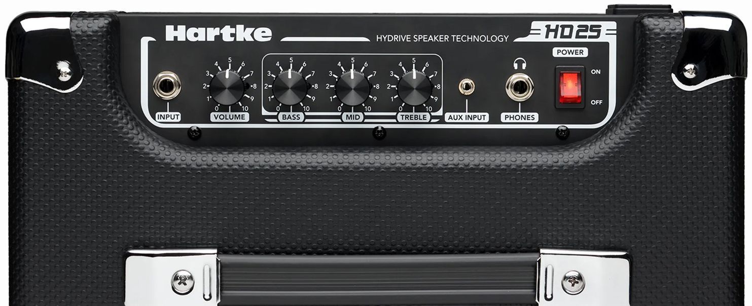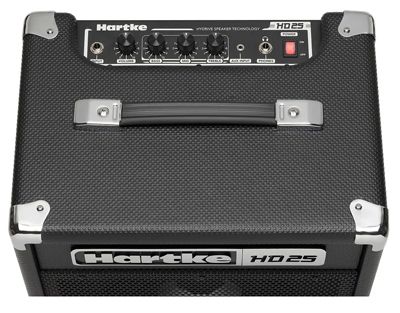 В HD25 (25 Вт, 8-дюймовый динамик) используется запатентованная Hartke технология HyDrive — тщательно разработанный гибридный басовый динамик с диффузором из бумаги и алюминия. Комбинация данных компонентов обеспечивает теплоту, округлость и мощное звучание, идеально подходящее для басистов всех жанров и стилей.