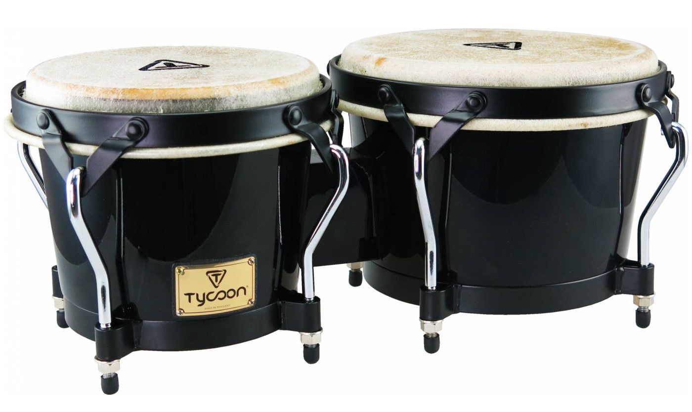 TYCOON STB-B - Бонго размера 7" x 8.5" изготовлены из сиамского дуба и имеют натуральную мембрану из кожи буйвола, цвет черный, бонго оснащены стальной фурнитурой и имеют специальные нескользящие ножки с резиновыми накладками.
