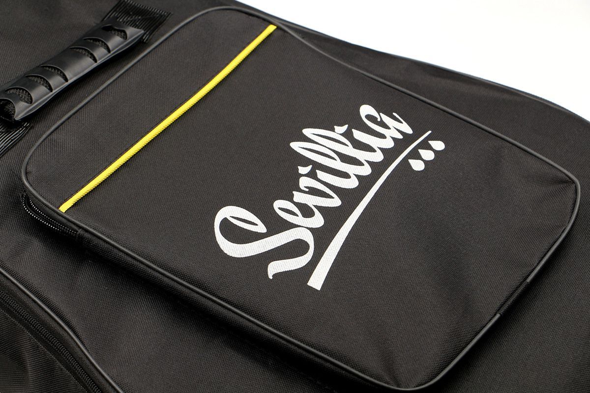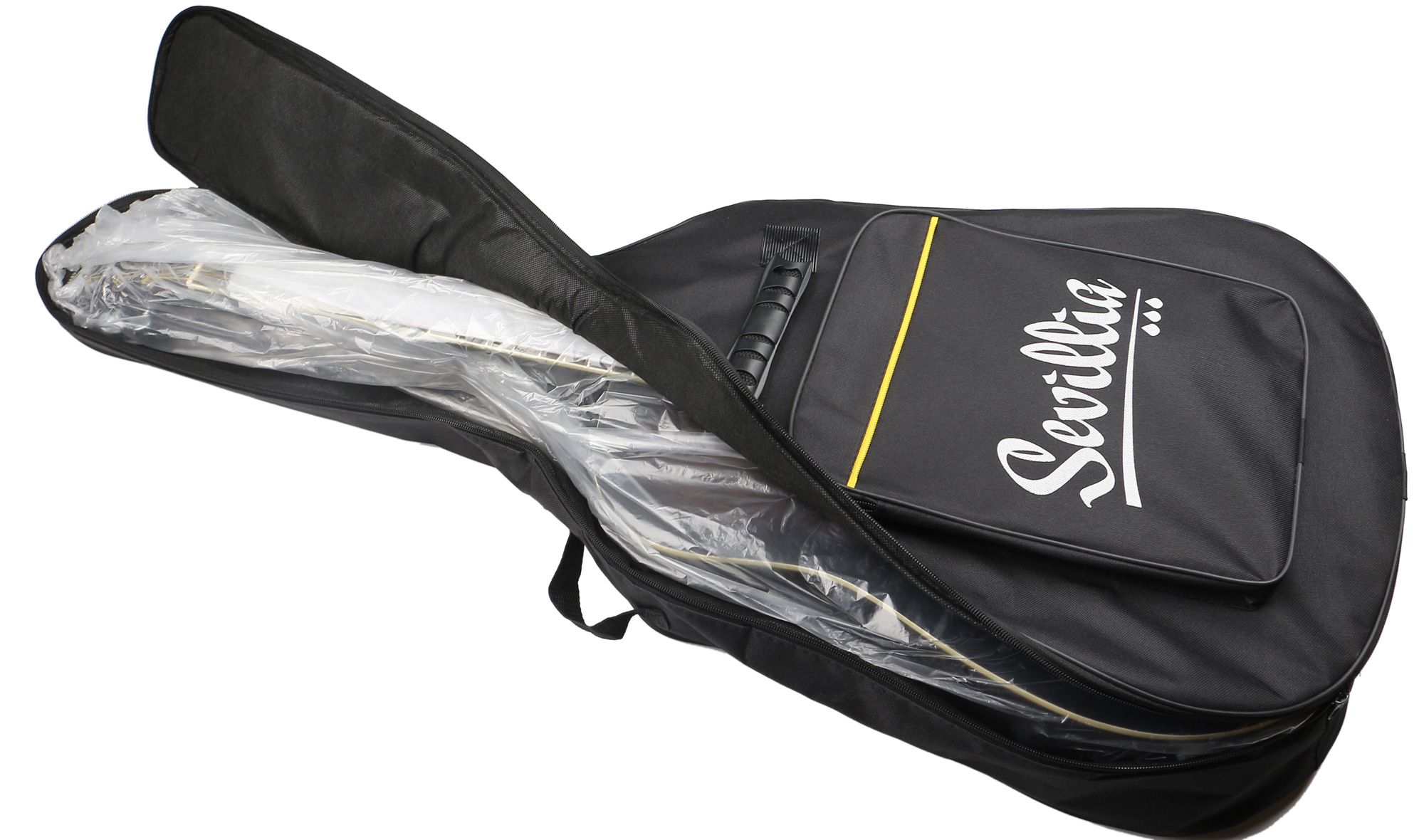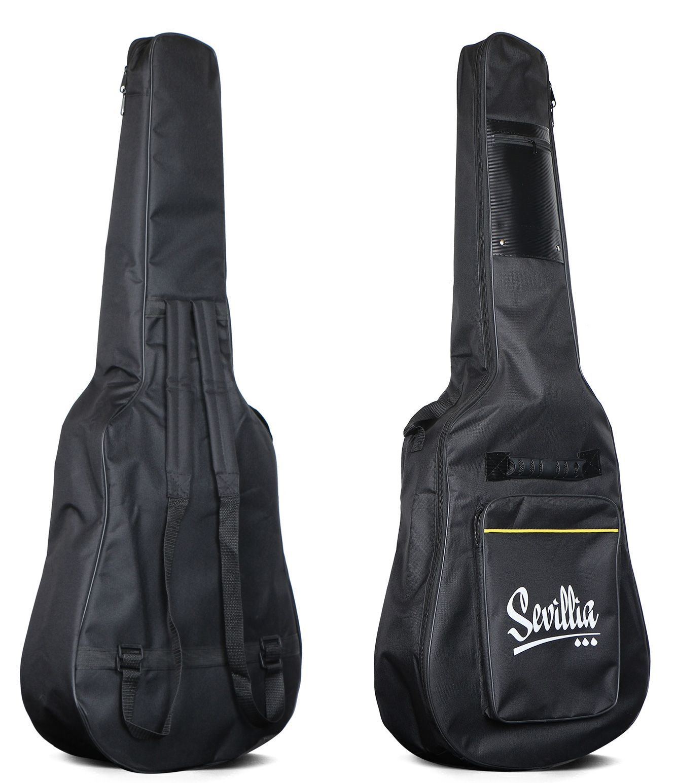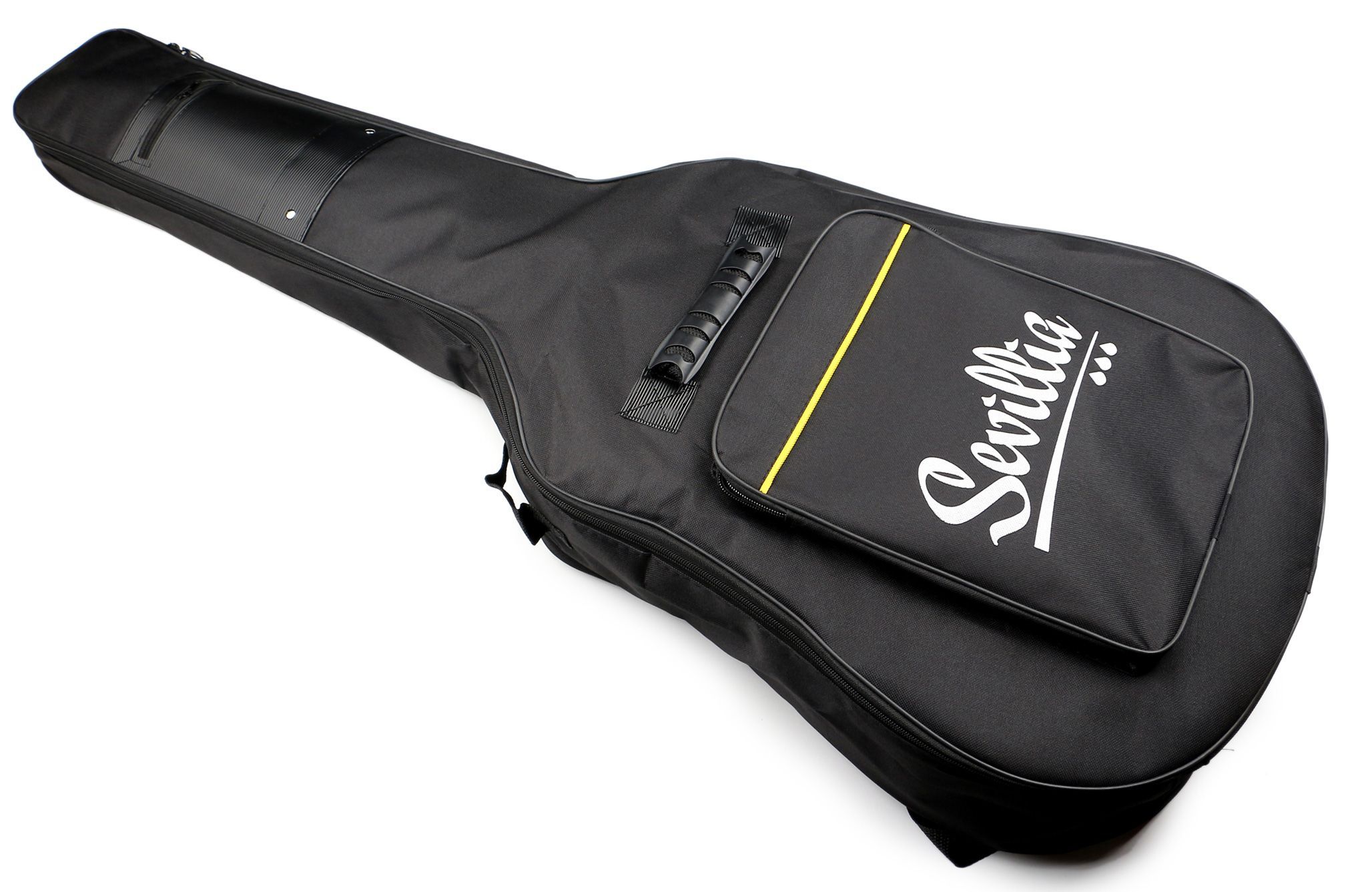 Чехол Sevillia GB-U41 BK обеспечит вашей акустической гитаре защиту, а вам удобство ее транспортировки. У него простой, но стильный дизайн, а также прочный, устойчивый к атмосферным воздействиям полиэстер с внешней стороны и 5 мм набивка внутри, которые прекрасно защищают инструмент от несчастных случаев в доме, а также от вмятин, потертостей и царапин в поездках. Также есть удобный передний карман, в котором достаточно места для хранения всех необходимых аксессуаров. А чтобы вы могли носить с собой гитару на уроки, репетиции и выступления с комфортом и безопасно, этот чехол включает прочно пришитую боковую ручку, спереди прорезиненную, светоотражающую полосу и рюкзак систему с мягкими наплечниками и регулируемыми лямками.