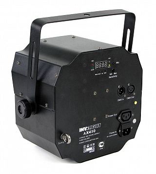 Управление: фейдеры +джойстик (PAN/TILT), LED дисплей, "time control", "BLACKOUT", MIDI, аудиовход и встроенный микрофон.