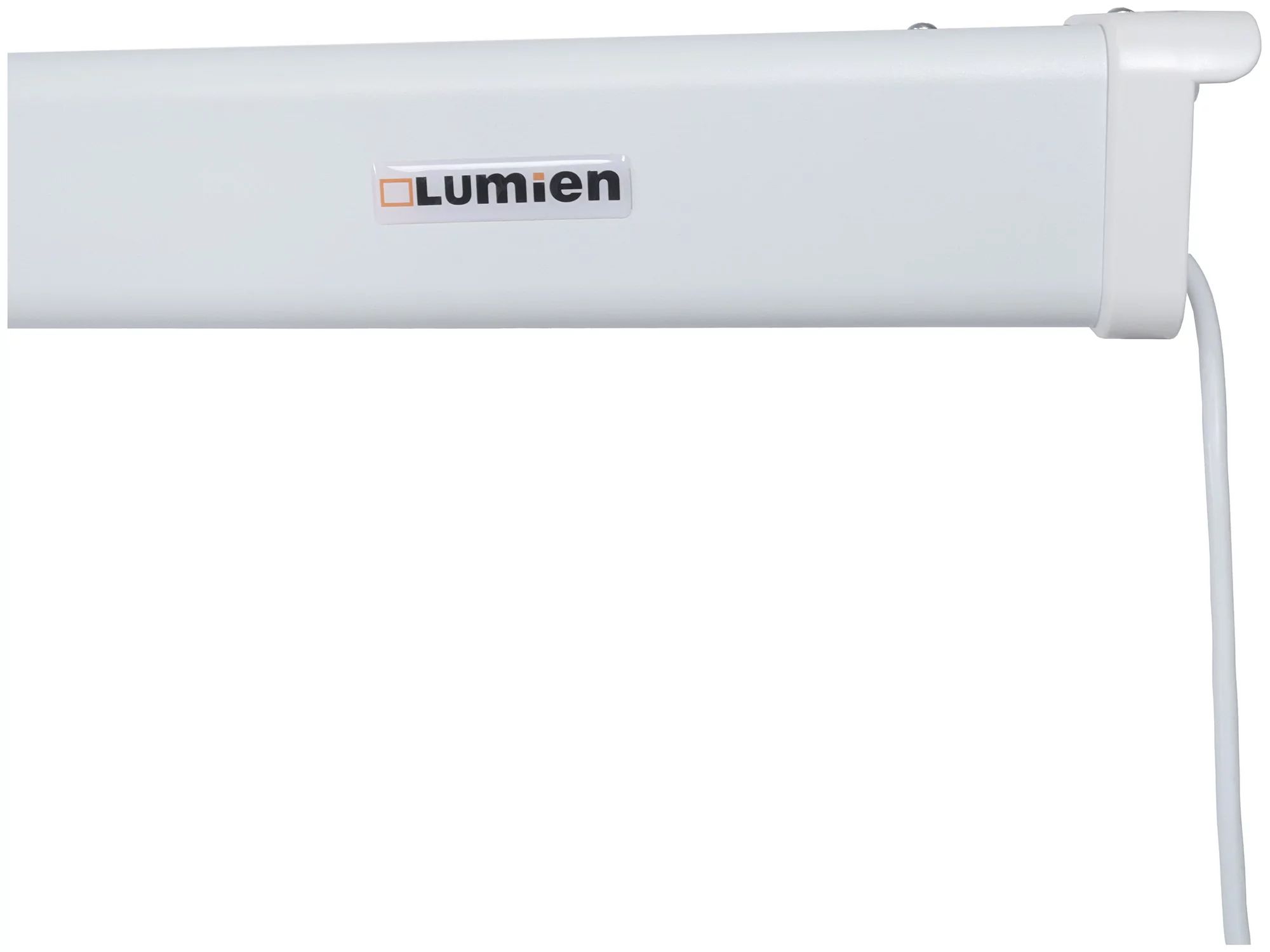 • корпус экрана с квадратным сечением выполнен из стали с белым полимерным покрытием. Торцевые заглушки корпуса изготовлены из ударопрочного белого пластика или металла для экрана с большим размером