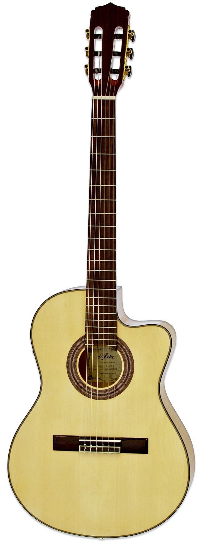 Электроакустическая, классическая гитара с вырезом А-48CE с цельной еловой верхней декой (массив ели), вместе с задней декой и обечайкой из волнистого клена предоставляет удивительную звуковую динамику. Гитара оснащена предусилителем Fishman Classica III с логотипом Aria. Универсальный инструмент как для начинающих гитаристов, так и для профессионалов своего дела.