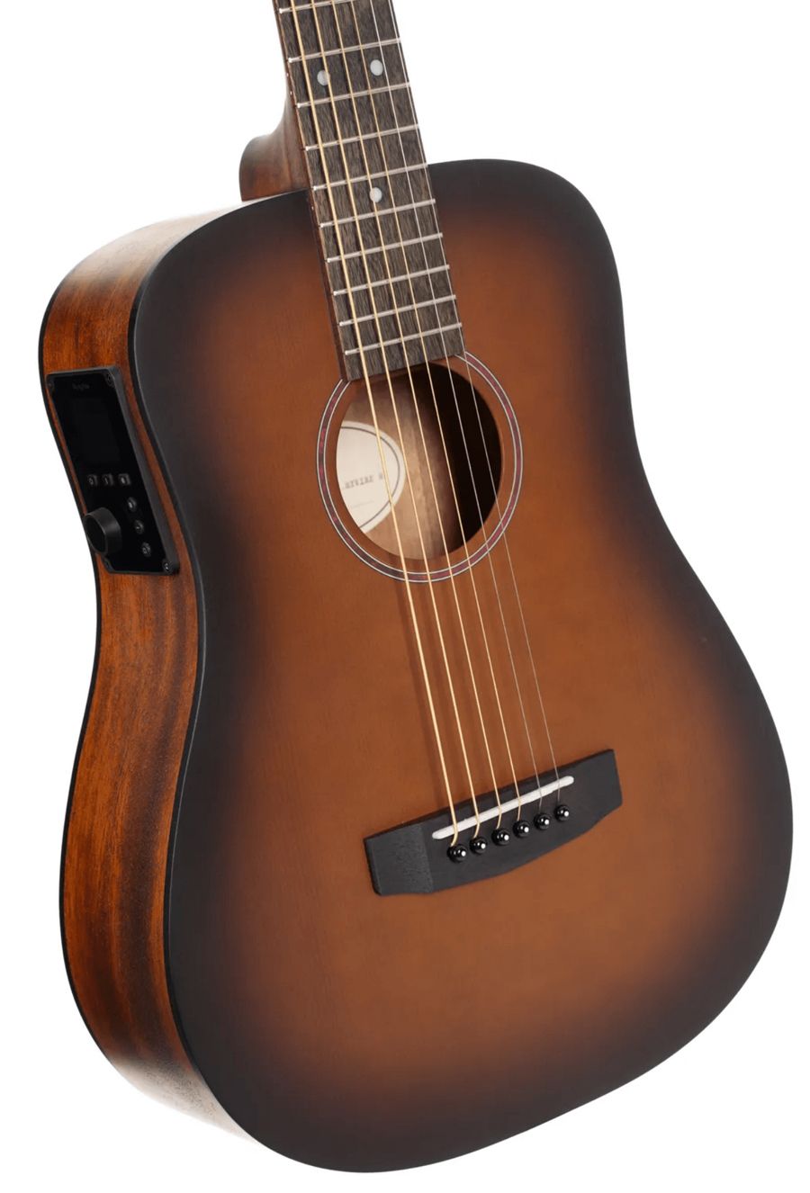 Компактные электроакустические гитары Cort Earth GO производят революцию в игре благодаря корпусу типа "дредноут" размером 3/4 и, что особенно важно, инновационной электронике HyVibe H2. Эта интеллектуальная система меняет правила игры, предлагая встроенный процессор эффектов, лупер, тюнер, метроном и совместимость с Bluetooth, что открывает совершенно новые возможности для музыкантов.