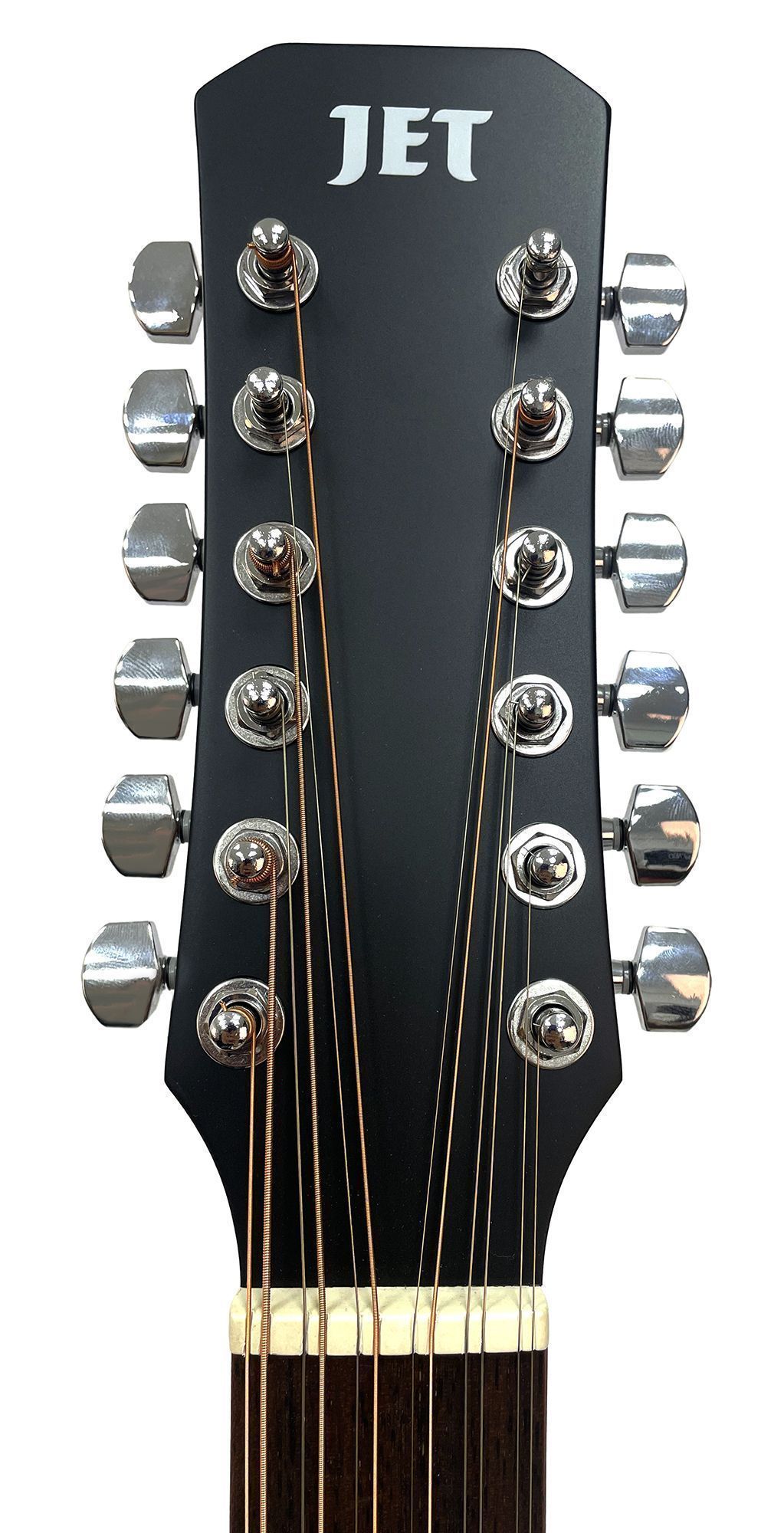 Модель JET JDEC-255/12 OP это 12-ти струнная электроакустическая гитара с активным звукоснимателем с трехполосным эквалайзером и встроенным тюнером. Форма корпуса Дредноут (Dreadnought) с вырезом.  У инструмента современное, ультратонкое покрытие Open pore, ставшее настоящим трендом у производителей гитар. Дека с таким покрытием становится легкой и отзывчивой, что очень нравится музыкантам. Визуально инструменты с покрытием Open pore отличаются ясно видимыми и ощущаемыми ложбинками. Инструменты с таким покрытием очень приятны на ощупь - они имеют бархатистую текстуру, тактильно кажутся натуральнее и естественнее. Этот же эффект подчеркивается разрезом древесины верхней деки, который раскрывает оригинальную структуру волокон древесины.