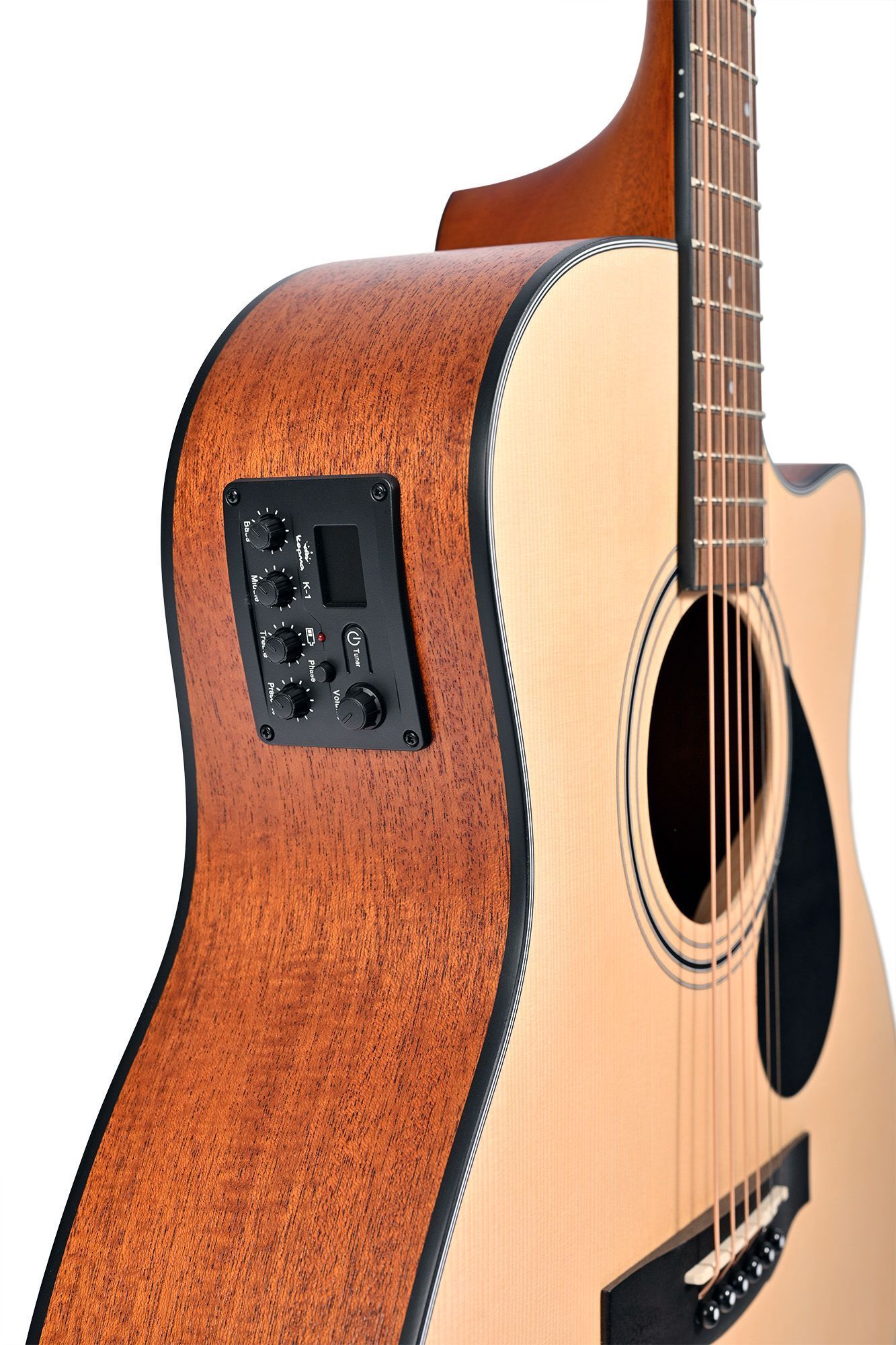 Электроакустическая гитара с корпусом Grand Auditorium, хорошо подходит для игры пальцами или медиатором, прекрасный выбор для фингерстайла. Модель EAC оптимизирована в плане выбора материалов и предлагает классическую для акустических гитар спецификацию – верхняя дека из ели (ламинат), а нижняя дека и обечайки из красного дерева (ламинат). Гитара KEPMA EACE порадует вас ярким и объемным звуком, предлагая впечатляющий баланс во всём тональном спектре. Модель EACE отлично сочетается с другими инструментами как в студийном миксе, так и на сцене, а музыканты оценили её преимущества в концертной или студийной работе.