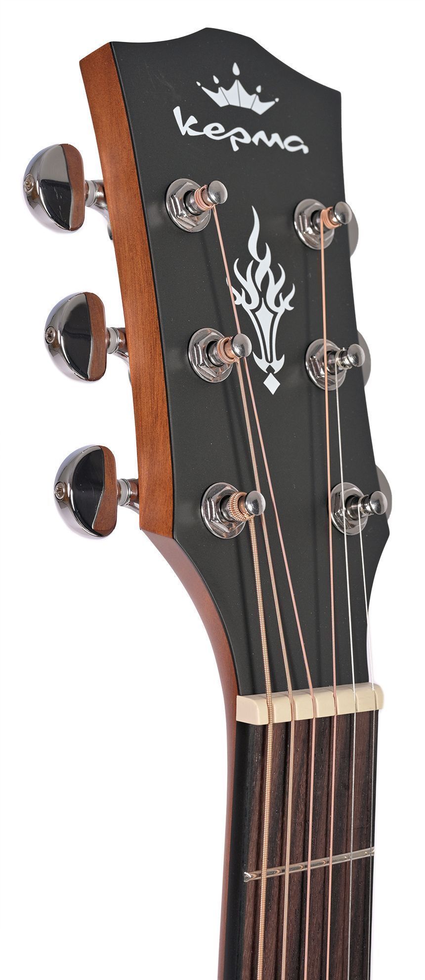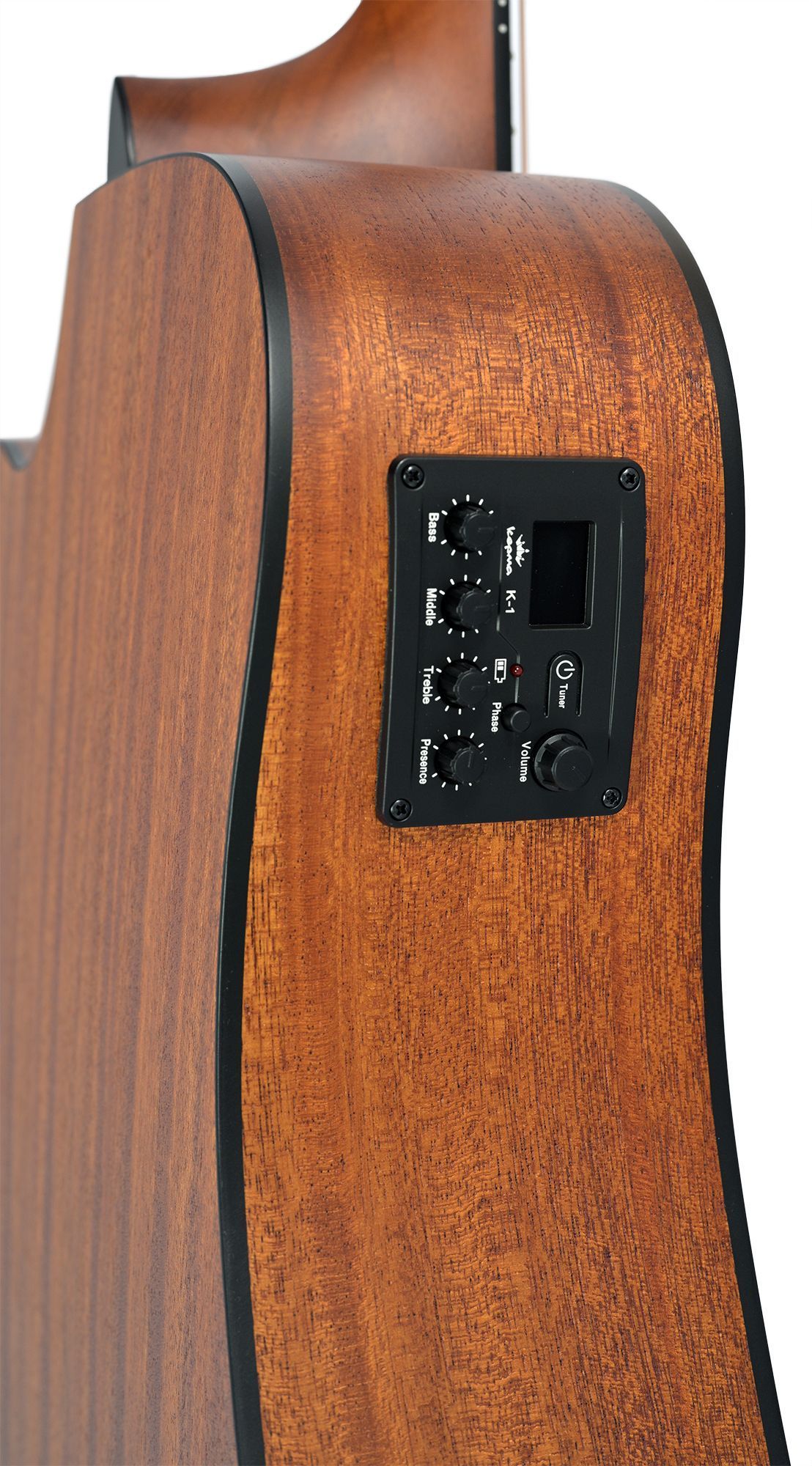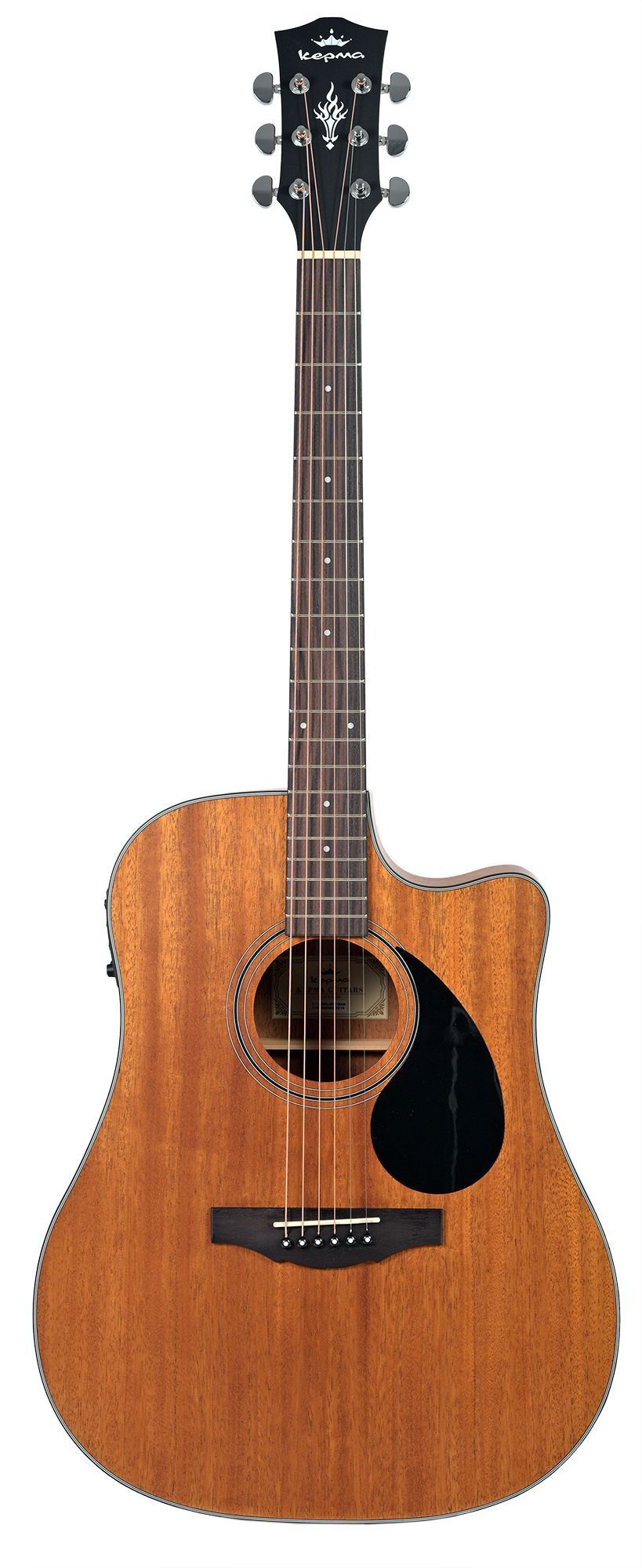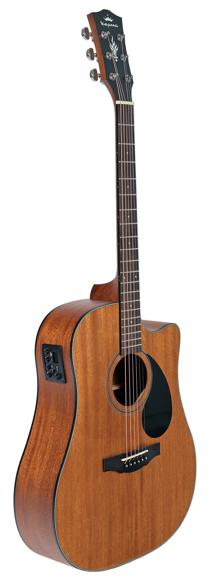 Электроакустическая гитара с корпусом Dreadnought, обладает мощным и сбалансированным звучанием с глубокими басами, яркими средними частотами и сильным чистыми верхними частотами. Инструмент универсален для различных музыкальных жанров, он хорошо подходит как для игры пальцами, так и медиатором, и может использоваться в качестве сольного и аккомпанирующего инструмента. Корпус гитары Kepma EDCE-WAM сделан из ламината махагони, который привносит в звук теплоту и объем. Модель EDCE предлагает комфорт при игре, специальный вырез на корпусе обеспечивает удобный доступ к верхним ладам для исполнения пассажей и мелодий. На головке грифа модели EDCE добавлен небольшой узор в виде пламени, добавляя гитаре индивидуальности.