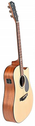 В гитаре Kepma EDCE используется самая популярная, проверенная временем «формула» древесины – верхняя дека из ели, нижняя дека и обечайка – из махагони. Для корпуса используется многослойная древесина – она проще в обработке, абсолютно стабильна и неприхотлива к перепадам влажности и температуры. Такую гитару можно без опасений взять с собой на природу и в дорогу. Гриф гитары также выполнен из махагони, и имеет современный тонкий профиль C-Shape – это значительно повышает удобство игры и упрощает процесс обучения. Накладка грифа выполнена из цельного китайского палисандра.