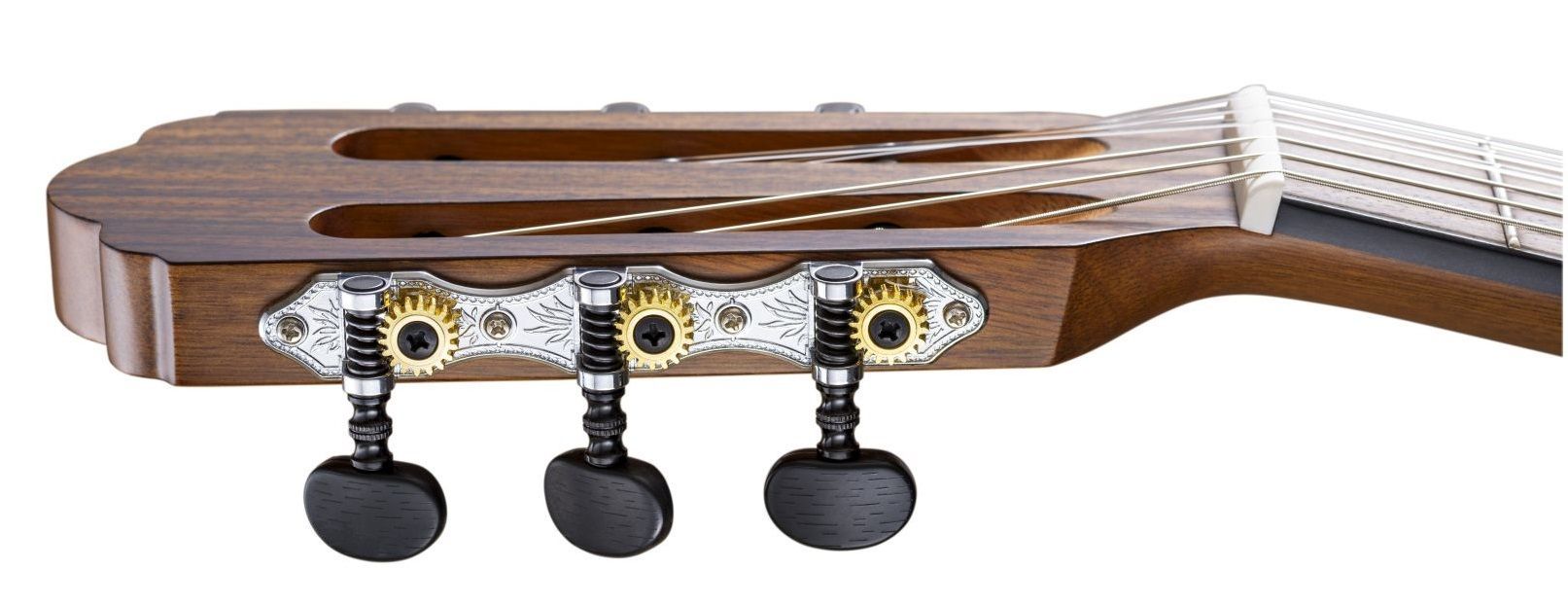 Классическая гитара с вырезом и подключением LA MANCHA C-Lime-TN-CER - идеальный инструмент, как для начинающих, так и для продвинутых игроков. Классический корпус, верхняя дека инструмента выполнена из массива немецкой ели, задняя дека и обечайка - из фигурного клена, что вкупе выдает резкое и насыщенное звучание. Верхний (48 мм) и нижний порожек изготовлены из искусственной кости. На гитаре установлены струны премиум-класса Savarez 510MRJ. Сердцем инструмента является высококачественная электроника нового поколения MB-3 (с возможностью зарядки по USB) . Для точной настройки на инструменте установлена высококачественная колковая механика  с черными бутонами. Отделка гитары натуральная (открытые поры)