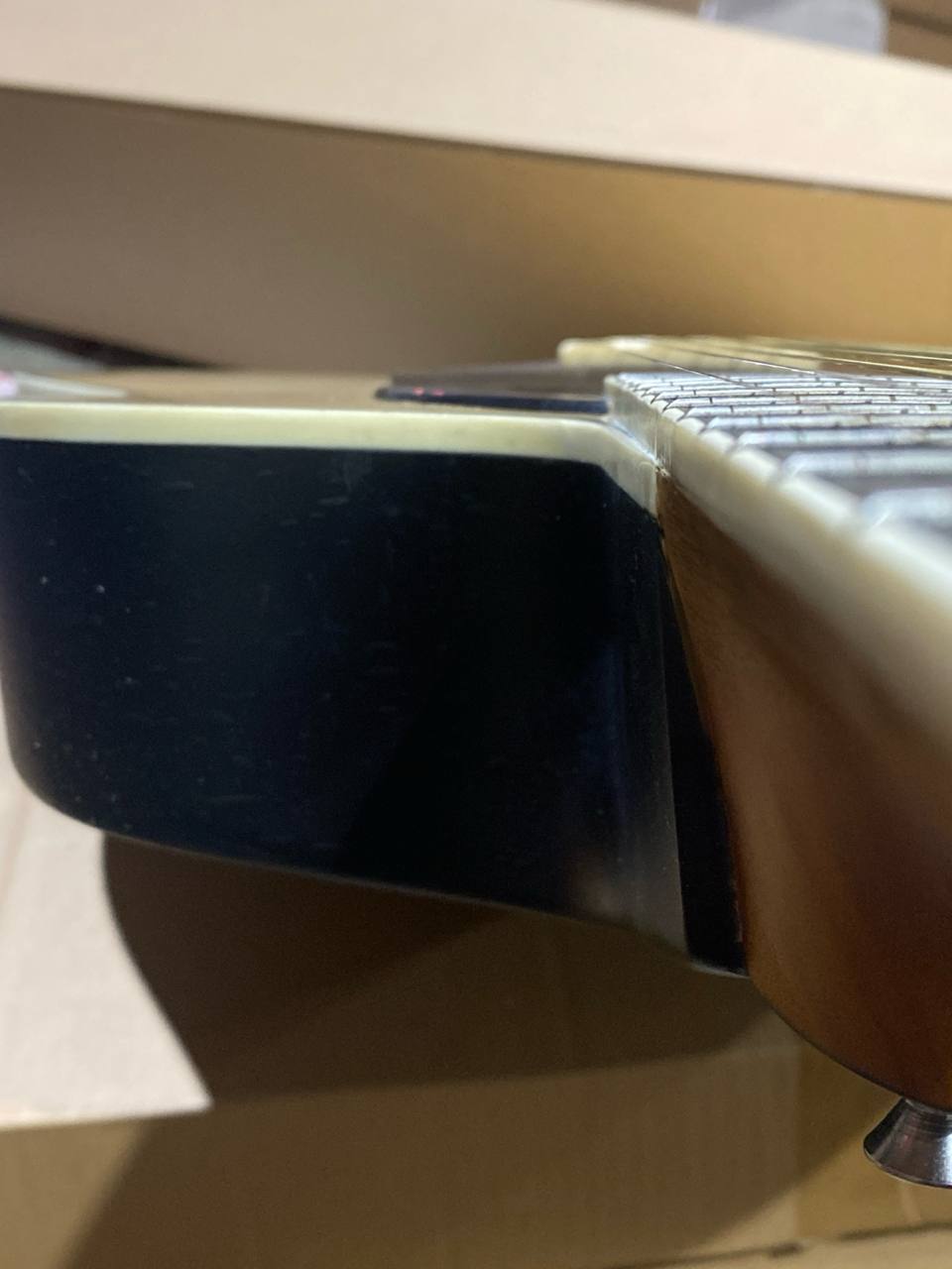 Трещина по лаку на верхней деке, выступ на грифе, играет до 12 лада