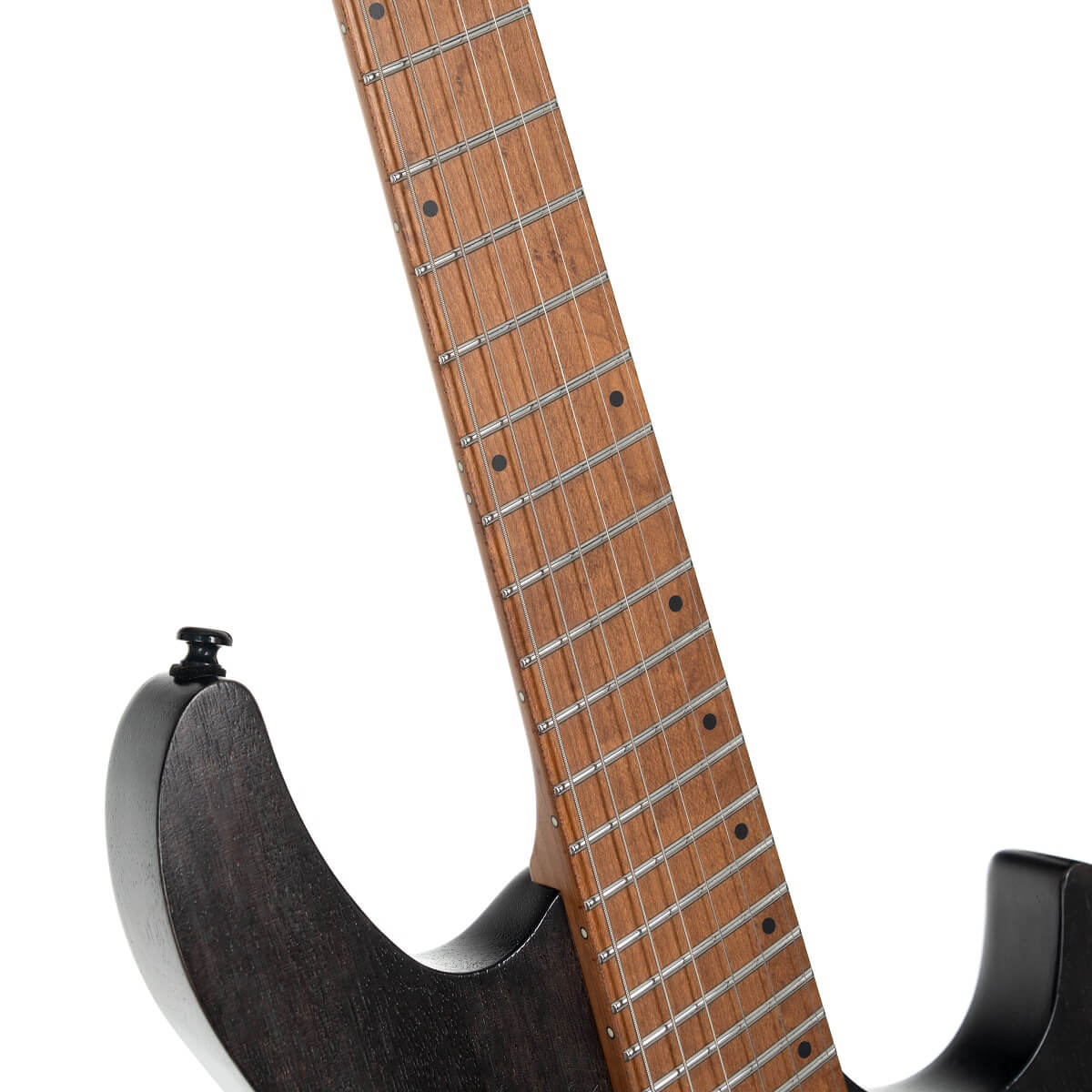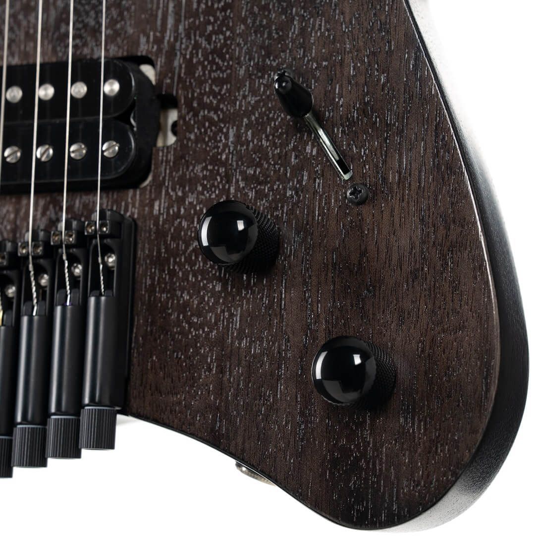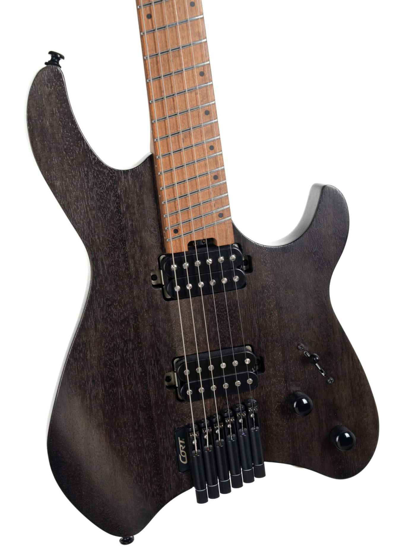 Cort Space G6MS — это безголовая электрогитара с современной конструкцией и удобством игры. Корпус из окоуме, лёгкая конструкция, и отсутствие головки грифа делает баланс очень естественным и комфортным, особенно если играешь много и долго. Гитару хвалят за удобную эргономику: профиль грифа Ergo V и 24 лада с хорошо обработанной накладкой позволяют быстро проходить от аккордов к соло. Особенность G6MS — особое расположение ладов с разной длиной от низов к верхам (multi-scale), что помогает сохранять плотный, собранный низ и лёгкую игру по верхам. Двойные звукосниматели Voiced Tone VTH77 дают мощный и артикулированный звук, особенно под перегрузом.