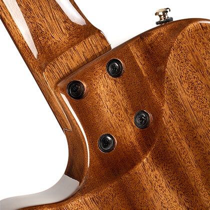 В отличие от квадратной пятки традиционных гитар с болтовым креплением, пятка Sunset Nylectric DLX скошена, имеет округлую форму и тонкая, что обеспечивает более лёгкий доступ к ладам в верхнем регистре.