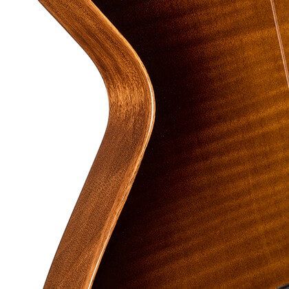 Проверенное временем сочетание верхней деки из массива ели и корпуса из красного дерева обеспечивает идеальный баланс между динамичным чистым звучанием цельной ели и глубокими, насыщенными средне-низкими тонами красного дерева. Для улучшения эстетики добавлен высококачественный шпон волнистого клёна. Конструкция корпуса из красного дерева с полыми камерами не только помогает снизить лишний вес, но и обеспечивает более глубокий резонанс, идеально подходящий для моделей Sunset Nylectric. А новая уменьшенная глубина корпуса (45 мм) обеспечивает больший комфорт в любой игровой ситуации.