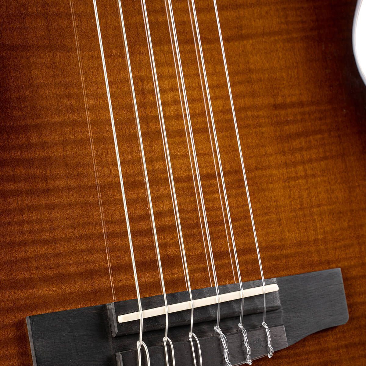 По сравнению с шириной верхнего порожка стандартной классической гитары 2,0 дюйма (52 мм), у Sunset Nylectric DLX он немного уже и составляет 48 мм, что делает ее идеальной как для традиционной классической игры, так и для исполнителей на акустической гитаре со стальными струнами или электрогитаре, объединяя лучшее из всех миров в одной универсальной гитаре для самых разных стилей игры.