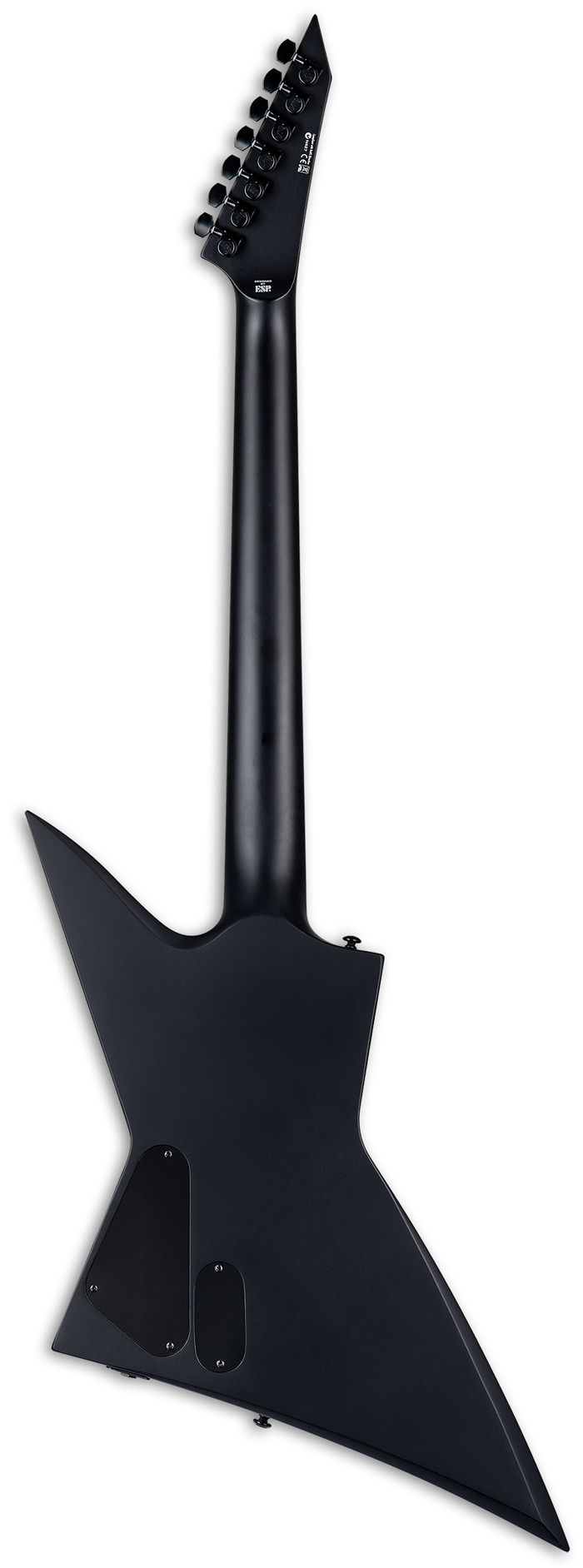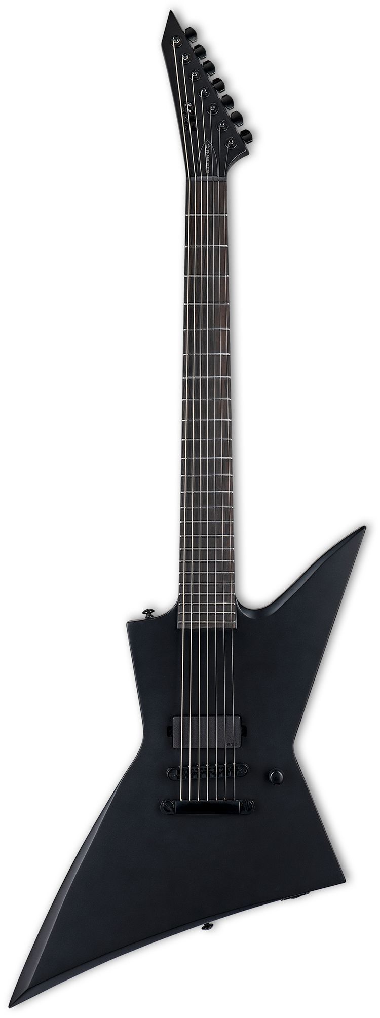 Серия LTD Black Metal сопоставима по качеству сборки с нашими инструментами LTD Deluxe «1000 Series», но с темной и угрожающей темой дизайна полностью черной отделки, компонентов и фурнитуры, одним звукоснимателем премиум-качества, накладками из черного дерева макассар без инкрустаций и светящимися в темноте боковыми маркерами и даже новым логотипом LTD в черном металле на головке грифа.EX-7 Baritone Black Metal поглощает свет, как Чёрная дыра. Это инструмент из серии Black Metal в одном из самых экстремальных стилей корпуса ESP в версии баритона с 7 струнами и мензурой 27 дюймов. Электрогитара имеет корпус из красного дерева, трехкомпонентный вклеенный кленовый гриф, 24 лада из нержавеющей стали extra-jumbo, запирающийся бридж и струнодержатель TonePros и один звукосниматель EMG 81-7H с черным логотипом.