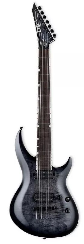 Гитары серии LTD 1000 созданы для того, чтобы обеспечить звук, ощущение, внешний вид и качество, которые необходимы профессиональным музыкантам в инструменте. H3-1007 Baritone — это 7-струнная 27-дюймовая гитара с расширенным диапазоном баритона, основанная на форме ESP Horizon-3, с более длинным скошенным верхним и укороченным нижним "рогом", обеспечивающим превосходный доступ к высоким ладам. Он предлагает корпус из красного дерева с великолепным топом из огненного клена и врезной гриф из трех частей клена с накладкой из черного дерева Macassar со смещенными вставками из белых перламутровых блоков и 24 ладами из нержавеющей стали экстра-джамбо. Этот монстр-баритон дает вам массивные тона, приводимые в действие набором звукоснимателей Seymour Duncan Sentient (нек) и Pegasus (бридж), которые можно разделить на single-режимы с двухтактным управлением. Другие функции включают запирающие колки LTD и запирающий бридж TonePros TOM со струнами сквозь корпус.