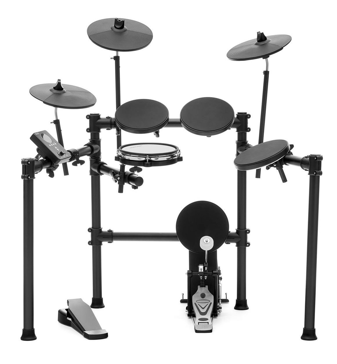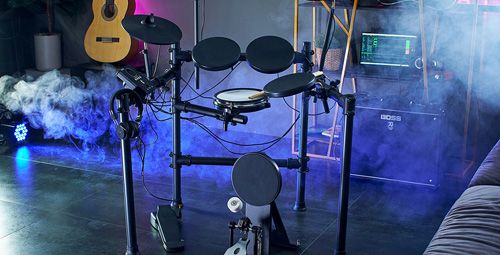 Комплектация: Стойка, педаль хай-хэта, педаль бас-барабана, стул барабанщика, наушники, пара барабанных палочек