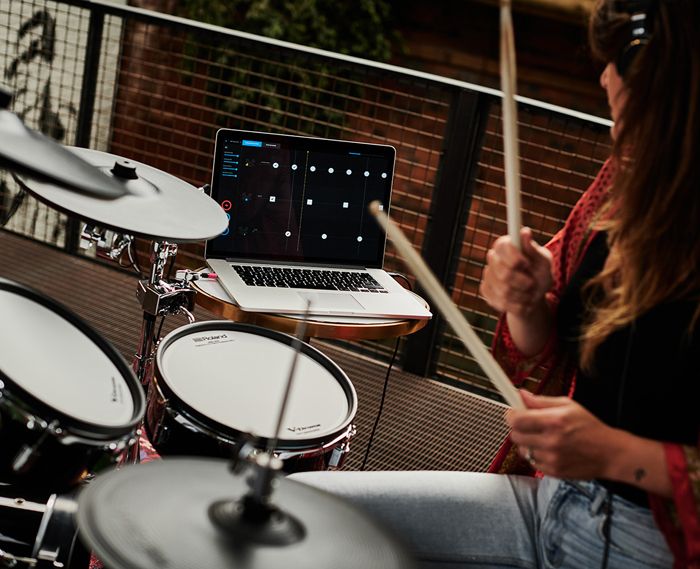 Melodics™ ? онлайн-платформа, позволяющая поэтапно разучивать музыкальные произведения. Подключите ударные V-Drums к Melodics через компьютер или планшет и играйте на них под сопровождение обучающего материала различной степени сложности. В процессе обучения даются указания, на какие места следует обратить особое внимание. Начните с 40 бесплатных уроков, но по мере необходимости можно будет перейти и к дополнительным.