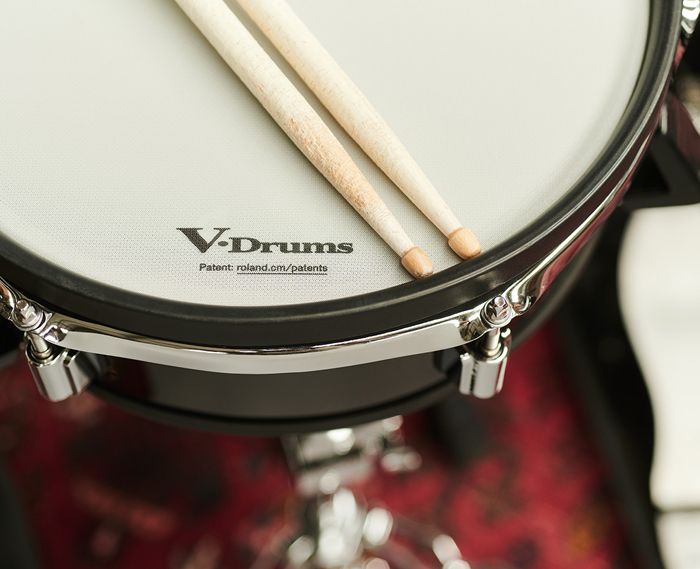 • Пэды малого барабана и томов с легендарными двухслойными сетчатыми мембранами компании Roland, предусматривающими регулировку натяжения