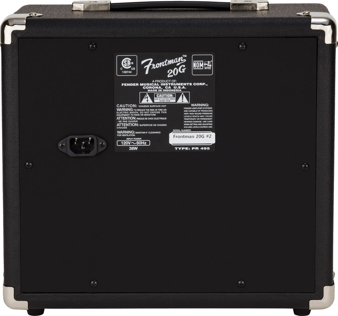 Frontman 20G сочетает в себе знакомую косметику Fender и «лучшее в своем классе» качество звука. 20G имеет простой интуитивно понятный дизайн и для новичков, и для профессионалов. Он включает в себя канал Clean с громкостью и тремя ручками эквалайзера для гибкости звука, а также отдельный переключаемый канал Drive с собственной громкостью. 20G оснащен 1/8-дюймовым Aux входом для воспроизведения любимых мелодий и разъемом для наушников для бесшумных занятий. Мощность комбика составляет 20 Вт, а 8-дюймовый Special Design динамик обеспечивает великолепное звучание во время тренировок или игр с друзьями.