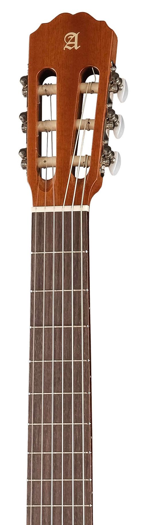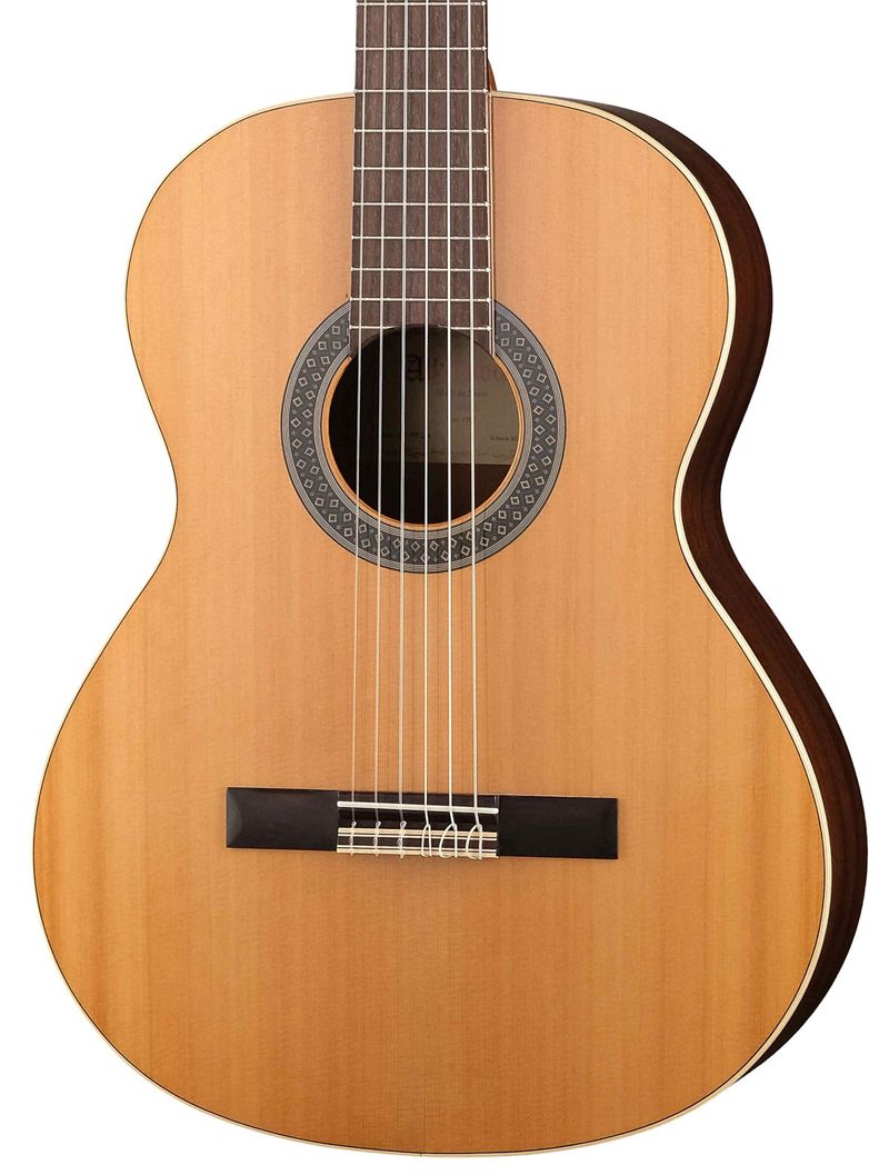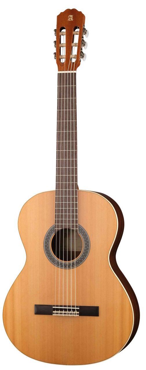 Как и все модели Alhambra, гитара изготовлена вручную из отборных пород древесины. Для верхней деки использован массив кедра, а для обечайки и задней деки — красное дерево (сапеле).