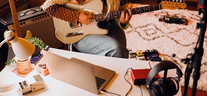 Настройте микрофон CM25 MkIII для вокала и гитары и подключите его к предусилителям Scarlett 2i2 4- го поколения самым чистым и детализированным из когда-либо созданных Focusrite, с огромным диапазоном усиления 69 дБ. Подключите электрогитару к одному из инструментальных входов Hi-Z 2i2 она будет звучать как через усилитель. Слушайте детальный звук через наушники SH-450. Scarlett привнесет профессиональное качество звука Focusrite везде, где бы вы ни создавали музыку.