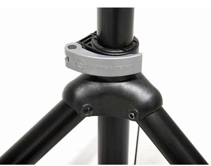 Также имеются дополнительные фиксаторы положения верхней стойки, что служит системой безопасности. Трубы стоек в диаметре составляют 3,5 см, на верхней трубе стойки имеется прочный «стакан» для установки акустических систем. Стойки имеют черный цвет.