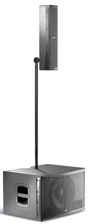 Кастомный 320 мм (12") сабвуфер с высокоходной звуковой катушкой с 64 мм (2,5") фазоинвертором оснащен литой алюминиевой ручкой с резиновыми вставками, точками подвеса M20, и шарниром, допускающим вертикальный наклон. Система оснащена усилителем класса D, обеспечивающим мощность 600 Вт RMS для секции НЧ и 400 Вт RMS для секции ВЧ, питаемую от импульсного источника питания. Встроенный DSP процессор предлагает 8 предустановок эквалайзера, обеспечивая оптимальную производительность звука в широком спектре применений.