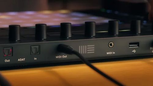 Поддержка MIDI осуществляется через пару портов TRS Type A диаметром 3,5 мм. Кроме того, имеется порт USB для прямого подключения MIDI-клавиатур, контроллеров и синтезаторов. Здесь можно использовать концентратор для подключения до шести устройств. Настройками MIDI и аудиоустройств теперь можно управлять непосредственно из Push, как в автономном режиме, так и в режиме контроллера. Устройства, подключенные к порту USB host, можно использовать в любом режиме, хотя Standalone будет игнорировать периферийные устройства, не относящиеся к MIDI, такие как мышь. Push также имеет выходы CV в качестве альтернативного режима для подключения ножных педалей. Для этого требуется разветвитель TRS на два мини‑разъема (не входят в комплект).