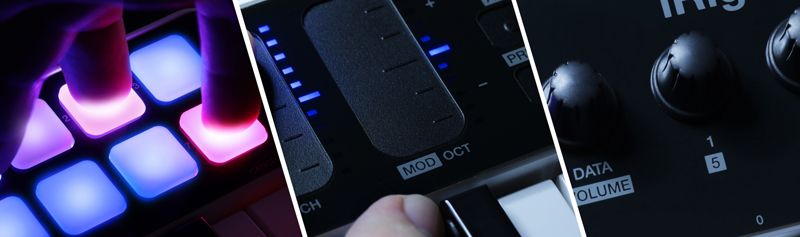 • Комплексные контроллеры: 2 сенсорных слайдера питча и модуляции (программируемые пользователем), кнопки октав, смены программ и управления транспортом, 5 программируемых сенсорных регуляторов, 8 чувствительных к скорости нажатия многоцветных назначаемых пэдов;