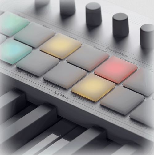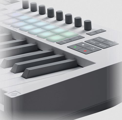 Для тех, кто играет пальцами, Launchkey 49 White оснащён запатентованными, чувствительными к скорости нажатия пэдами FSR с полифоническим послекасанием. Каждый пэд использует уникальный радиальный сенсор для большей чувствительности и согласованности, обеспечивая более сжатое и выразительное исполнение. Их также можно настроить на воспроизведение аккордов или индивидуальных нот с полифоническим послекасанием.