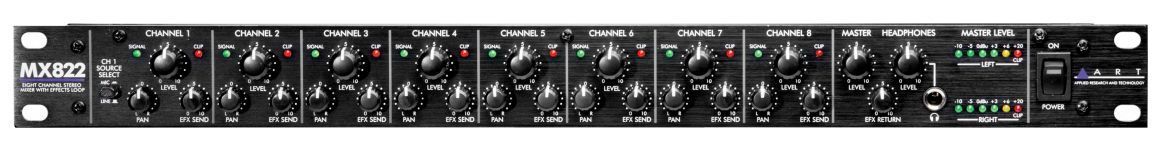 MX822 — восьмиканальный рэковый стереомикшер с петлей эффектов.