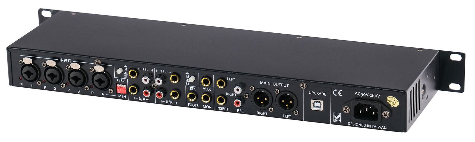 • Каналы 1–4 с регулировкой высоких/средних/низких частот.