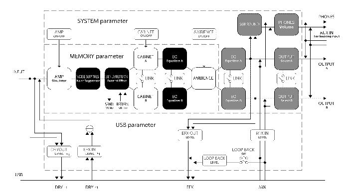 Особенности: 32-битные АЦ-/ЦА-конвертеры, 32-битная обработка с плавающей точкой, частота дискретизации 96 кГц, 128 слотов для пользовательских импульсных характеристик с поддержкой моно- и стереофайлов WAV, обработка с точностью до 32 бит с плавающей точкой и разрешением до 96 кГц, продолжительность 200 или 500 мс, восемь моделей гитарных и три модели бас-гитарных усилителей для работы в разных музыкальных стилях, 128 ячеек памяти для хранения пользовательских настроек, универсальный аудиоинтерфейс USB для записи и воспроизведения Подробное описание