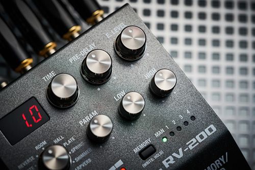 RV-200 имеет память для хранения 127 звуков реверберации, поэтому ваши любимые настройки всегда будут готовы к использованию. Два встроенных ножных переключателя обеспечивают большую универсальность в использовании, предоставляя множество возможностей для переназначения их функций в соответствии с вашими потребностями. Например, вы можете обойти эффект, прокручивать ячейки памяти и активировать функцию Hold, чтобы эффект реверберации продолжался до тех пор, пока переключатель нажат. Также можно назначить мощные эффекты, такие как Warp, Twist и Fade.