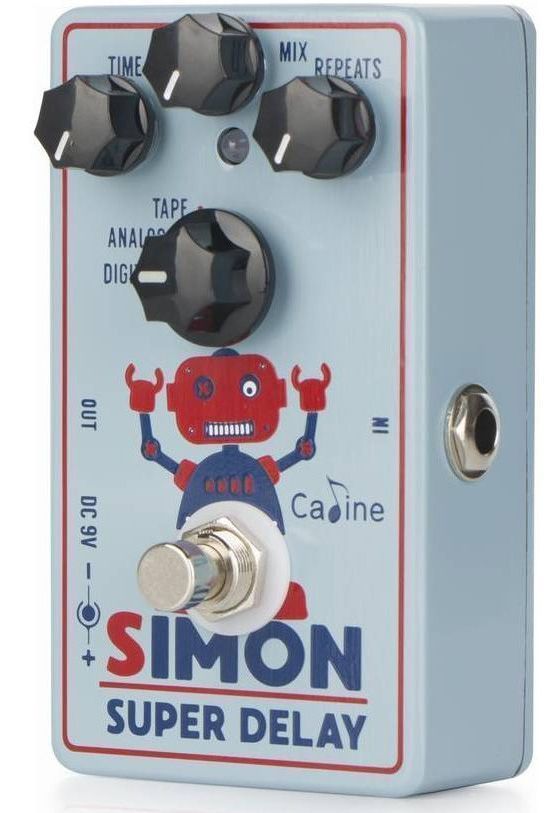 Caline CP-513 – педаль дилея с вариативным звучанием. Simon Super Delay имеет 3 режима, – Digital, Analog, Tape (цифровой, аналоговый и ленточный дилей), и позволяет использовать десятки вариантов звучания: от коротких повторений для создания более плотного звучания гитары до эмбиентных длинных хвостов.