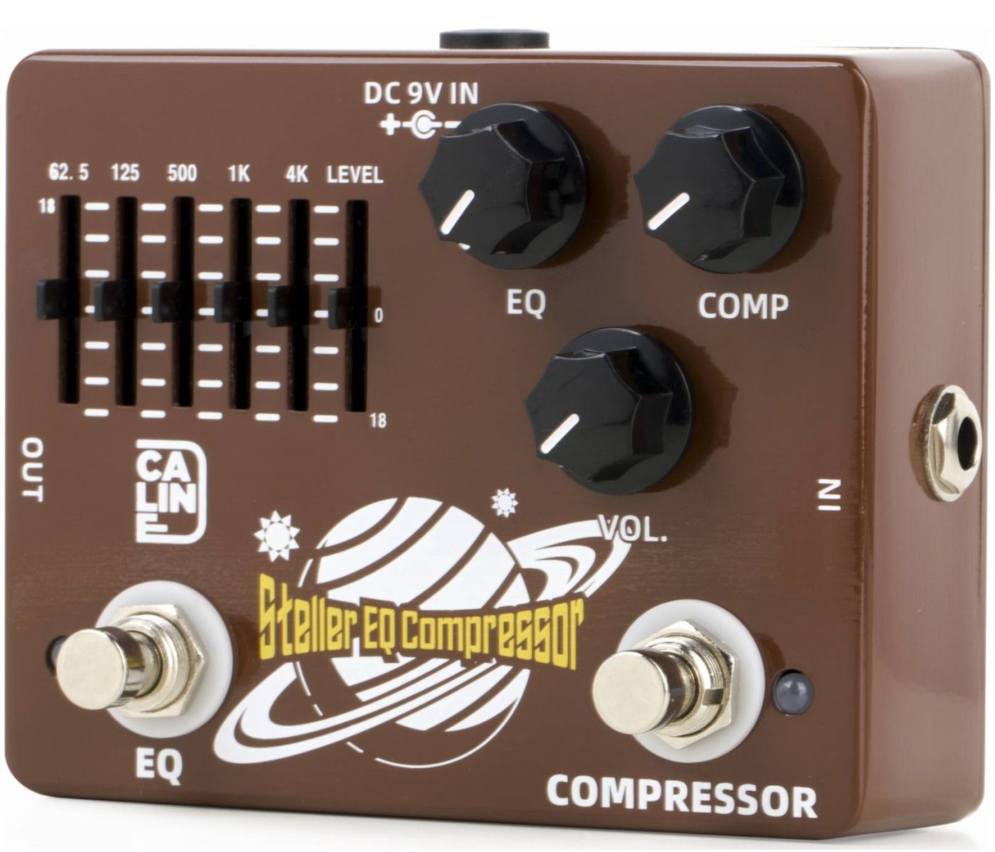 Caline DCP-10 Stella EQ Compressor объединяет в одном корпусе 2 педали: Caline CP-73 6 Band EQ + Caline CP-47 Pressure Tank Compressor.